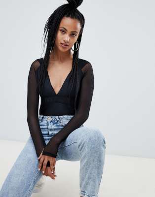 39+ Ivy Park Mesh Sleeve Bodysuit Black PNG